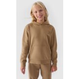 The girls' nonzip hoodie with a hood is perfect as an element for both casual and sporty styles for everyday wear. It has a regular cut that comfortably adapts to the silhouette. The french terry fabric is smooth on one side, while the other side features a visible loop texture. The fabric in this weave is soft, more flowing, and thinner to the touch. The girls' hoodie with a hood has a medium weight of 280 gsm, making it soft and more breathable. The nonzip hoodie for girls is made of 80% cotton, which makes it soft, durable, and pleasant to the touch. Thanks to the addition of polyester (20%), the material maintains its shape and is resistant to wear even for many seasons. Integrated hood at the neckline. Elastic cuffs with a drawstring. Front open kangaroo pocket. Pulls over the head. Bottom with a wide drawstring.
