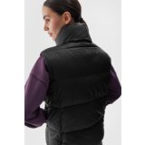The women's sleeveless vest is filled with synthetic down, which is more durable and easier to maintain than natural down. Even when exposed to moisture, it retains its insulating properties for a longer time and dries much faster. Additionally, it does not require a complicated washing and drying process. The hydrophobic impregnation coating covers the outer layer of the material and protects it from absorbing water. The coating causes moisture to condense on the surface of the fabric or knitwear, after which it freely drips away. A high collar protects the neck and additionally shields against cold and wind. There are 2 open pockets on the sides. The women's vest is fastened with a oneway main zipper with an inner windproof flap that limits the penetration of cold into the jacket's interior. The bottom circumference can be adjusted using a tunnel drawstring with stoppers. Main material: 100% polyamide. Lining: 100% polyamide. Filling: 100% polyester.