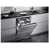 Podrobnosti o napravi Pomivalni stroj 7000 GlassCare pomaga zaščititi občutljivo stekleno posodo. Uporablja SoftSpikes za varno in stabilno namestitev skodelic in ima edinstveno spodnjo mrežo, ki varno drži skodelice in jih ščiti pred razbitjem. Vrhunsko čiščenje in najboljša nega stekla Pomivanje občutljive steklene posode je najbolj varno z držali AEG SoftGrip in SoftSpikes, ki odlično držijo kozarec in ga ščitijo pred poškodbami. Vrhunski drsni tečaji: Brezšivne možnosti integracije pomivalnega stroja Vrhunski drsni tečaji so zasnovani tako, da prenesejo maso težkih kamnov, visokih ali izjemno debelih plošč, kar zagotavlja nove možnosti za vrhunsko, brezhibno integracijo vašega pomivalnega stroja. Brezhibna integracija Sistem drsnih tečajev PerfectFit omogoča enostavno namestitev pomivalnega stroja. Prilega se napravam vseh višin niš, zato stojala ni treba rezati. Prilega se vsaki moderni kuhinji. Prilagodljiv prostor in praktično pranje s predalom MaxiFlex Predal MaxiFlex je namenjen shranjevanju jedilnega pribora in kuhinjskih pripomočkov različnih velikosti in oblik, velikih ali nenavadnih oblik. Prilagodljivi delilniki in večja globina omogočajo prilagajanje vsakega polnila. Pralni stroj je enostaven za polnjenje, posoda pa se pomije v enem pranju. Nezahtevna pot do odgovornega pomivanja posode Odgovorne odločitve so postale lažje. Uporabite drsnik QuickSelect na zaslonu na dotik, da izberete želeni čas cikla in ekometer vas bo vodil do najbolj trajnostnega programa varčevanja z energijo in vodo skozi vizualno zelene črte.