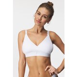 Modrček za dojenje Modrček primeren tudi za velike prsi Gladke nepodložene košarice Odpenjanje zgornjega dela košaric Odstranljive blazinice Brez kosti Zapenjanje zadaj, s tremi kaveljčki in tremi stopnjami zapenjanja