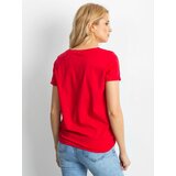Women's cotton tshirt basic red. Material: 90% cotton, 10% elastanewashing method: machine wash at 30C The model is wearing a size S. Model's measurements: height 175 cm, bust 84 cm, waist 65 cm, hips 92 cm.