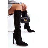 Women's kneehigh boots. Fastened with a zipper. Made of eco suede. Set on a stiletto heel. Round toes. Lined with a shoemaker's fluff. Stitching along the entire length of the shaft. You can use this model for many styling options! When choosing a size, please refer to the size chart.3623,5/3724,5/3825/3925,5/4026/4127cm