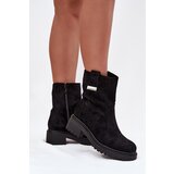 Women's ankle boots made from eco suede. Set on a low heel, they provide comfort with every step, and the interior lined with a shoe blanket guarantees warmth. The zipper model allows for easy quick wearing, and a decorative short strap on the top of the shaft adds a subtle, stylish touch that highlights everyday outfits. Please refer to the size chart when choosing your size. When choosing a size, please refer to the size chart.3623,5/3724/3824,5/3925,5/4026/4126,5cm