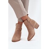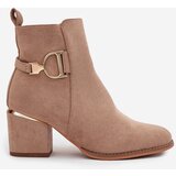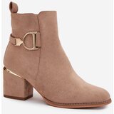 Women's ankle boots made of eco suede. Set on a stiletto heel. Rounded toes give them a subtle, feminine character, and a zipper makes for quick wearing. The interior lined with a soft shoe blanket provides warmth and comfort, and gold elements add a stylish, elegant accent that perfectly complements everyday and more formal outfits. When choosing the size, please refer to the size chart. When choosing a size, please refer to the size chart.3623,5/3724,5/3825/3926/4026,5/4127cm