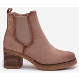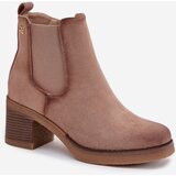 Women's ankle boots made from eco suede. Set on a block heel that provides stability and comfort all day long. Insulated, ensuring warmth on colder days, and a zipper makes them easy to put on. A subtle gold detail on the side of the shaft adds an elegant touch. Perfect for everyday styling that requires both comfort and a fashionable look. Please refer to the size chart when choosing your size. When choosing a size, please refer to the size chart.3623/3723,5/3824,5/3925/4026/4126,5cm