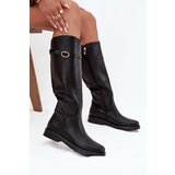 Trendy women's kneehigh boots made of ecoleather are a musthave for cooler days. Set on a platform and flat heel, they provide stability and comfort with every step. The folded shaft adorned with a strap and buckle is the main asset of this model, adding character. The toes are rounded, and the interior is insulated with shoe fleece, ensuring warmth. Fastened with a zipper, these boots pair perfectly with autumnwinter outfits. They are definitely worth having in your wardrobe! When choosing a size, please refer to the size chart.3624/3724,5/3825,5/3926/4026,5/4127,5cm