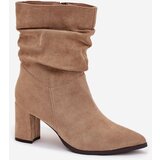 Women's ankle boots made of ecosuede are an elegant and fashionable option for the autumnwinter season. Set on a stable block heel that beautifully elongates the silhouette, and pointed toes that add a feminine character. The ruched shaft gives a stylish, modern look, and the practical zipper makes it easy to put on. The interior is lined with a shoe blanket to ensure comfort and warmth on colder days. This model is perfect for both everyday and elegant outfits. When choosing the size, please refer to the size chart. When choosing a size, please refer to the size chart.3623/3724/3824,5/3925/4025,5/4126cm