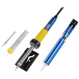 Set za spajkanje SET VKLJUČUJE: Spajkalnik 30W Pumpica za razspajkanje Rezervna konica Žica za spajkanje (3m / 1mm) Kovinska podloga za spajkalnik Rezervna odsesovalka Rezervna gumica za odsesovalko