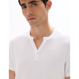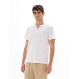 This white waffle knit tshirt is just what you need for your summer wardrobe. Lightweight material, comfortable regular fit and henley neckline give it a flair. It looks great, it's even easier to wear.
