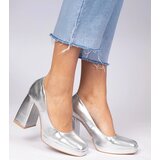 D/CEO marka niezdefiniowana Silver square-toe pumps on a massive heel Irenois Slike