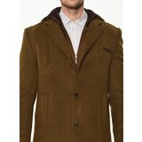 Moški plašč dolgi rokav ukrivljen ovratnik nastavljiva kapuca 2 stranska žepa notranji žepi zapenjanje z gumbi