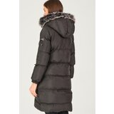 Ženska zimska jakna dolgi rokav krznena kapuca 2 stranska žepa zapenjanje na zadrgo