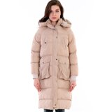 Ženska zimska jakna dolgi rokav dizajn s 4 žepi kapuca zapenjanje z zadrgo in pritiskači