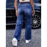 DStreet Spodnie damskie RETROFIT jeansowe szerokie z wysokim stanem niebieskie Slike