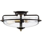 Elstead Quoizel Griffin Stropna svetilka v obliki okrogle oblike, bronasta, z obrabljenimi medeninastimi poudarki Zaključek: Palladijev bron z obrabljenimi medeninastimi poudarki Material: Jeklo, prozorno zrnato steklo Višina: 19,4 cm Širina: 42,2 cm Premer: 42,2 cm Vrsta žarnice: E27 Število žarnic: 3 Žarnica je priložena: Ne Moč (največja): 60 W