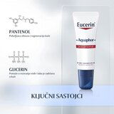 Eucerin Aquaphor, 10 ml, Balzami za ustnice za ženske, Balzam za ustnice Eucerin Aquaphor je nepogrešljiv pripomoček za nego občutljive kože ustnic v vseh letnih časih. Lastnosti: globinsko vlaži in intenzivno hrani popravlja razpokane ustnice ustnicam zagotavlja zaščito pred zunanjimi vplivi ustnice pušča mehke in gladke dermatološko testirano Sestava: brez dišav Navodilo za uporabo: Nanesite na ustnice kadarkoli čez dan po potrebi.