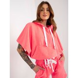 Fluo pink summer basic sweatshirt set with shorts . product code: EMKMPL744.88PDominant pattern: plainStyle: Casual, Sportyoccasion: everyday, for the city, for a walk The model is wearing one size. Model's measurements: height 173 cm, bust 78 cm, waist 61 cm, hips 90 cm. Dimensions of the set in one size measured flat: width of the sweatshirt under the armpits 67 cm, sleeve length 29 cm, length of the sweatshirt 55 cm, width of the shorts at the waist 34 cm, waist height 30 cm, length of the shorts 41 cm.