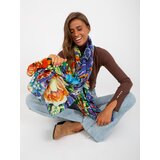 Blue and orange scarf with prints. Material: 100% cottonwashing method: machine wash at 30CProduct code: ATPO176120.58Dominant pattern: print dimensions: 106 x 182 cm