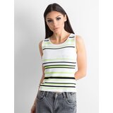 White and green striped top. Material: 68% viscose, 32% nylonwashing method: machine wash at 40CThe model is wearing one size. Model's measurements: height 168 cm, bust 89 cm, waist 60 cm, hips 91 cm.The one size fits people wearing sizes S and M.