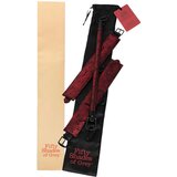Petdeset odtenkov sladkega pričakovanja Podaljšek za noge z manšetami (črnordeča)Še en član serije Petdeset odtenkov sive, ki ga lahko dodate v svojo zbirko! Seksi par zapestnih manšet, prevlečenih z rdečim satenom, z ujemajočo se raztegovalno palico, s katero lahko partnerjeve roke ali noge zlahka prisiliš, da se razmaknejo.Omejite partnerjevo gibanje in ga naredite popolnoma ranljivega za svoje želje!Izdelano iz visokokakovostnih materialov z visoko natezno trdnostjo in z originalnim logotipom Fifty Shades. Komplet vključuje:2 objemki z Dobročki1 kos raztegovalne palice1 kos vrečke za shranjevanje izdelkaZakaj je dober?Narejen je iz materiala z visoko natezno trdnostjo brez poškodb, idealen za začetnikeVelikost objemke je nastavljiva z robustno kovinsko zaponko lahko se prilagodiDobroč ponuja možnosti pritrditveUnisex za ženske in moške (za moške je priporočljivo le za tanjša zapestja)Raztegovalnik prisili partnerja, da razširi roke ali noge, kar povzroči sladek užitekRdeč saten na zunanji strani, črne spone iz usnja na notranji strani lahko ga uporabljate obrnjenega navzdolRaztegovalna palica je fiksne dolžine, zato ne bo pomotoma zdrsnila skupajSponke so odstranljive, zato jih lahko uporabite za druge stvariPakirano v priročni ovojnici diskretno in okolju prijazno hkrati!Bodite pozorni na to:Pranje samo z rokamiDolžina palice ni nastavljivaSpecifikacija izdelka, lastnosti:Izdelek z blagovno znamko Fifty Shadesunisex izdelek: za ženske in moške (samo za tanjša moška zapestja)mehka, podložena tkaninanastavljiva velikost sponke s kovinsko zaponkoširina sponke: 5,3 cmdolžina sponke: 32,5 cmdebelina manšete: 0,5 cmdolžina raztegovalnega droga: 44,5 cmpremer razporka: 1,8 cmPakirano v papirnati ovojnicibarva: rdečečrna s črnimi kovinskimi delimaterial: PU, poliamid, ABS (v skladu z zahtevami EU, brez ftalatov)teža: 415 gpredlog za čiščenje: Pooblazinjenje: temeljito obrišite z blago milnico v mlačni vodi, nato obrišite s suho krpo, ki ne pušča vlaken. Dolgoročno jo obdelajte s sredstvom za nego usnja.