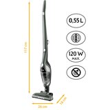 FIRST pokončni sesalec Cyclon, črnosiv. Tehnične lastnosti: 2 v 1 brezžični sesalnik Moč motorja: 120 W Vakuum: 6 kPa Filtrirni sistem: Cyclone Kapciteta posode za prah: 0,55 L Raven hrupa: 78 dB Specifikacija baterije: LIION 22,2 V / 2200 mAh Zračni filter: HEPA (vhod), goba (izhod) Tip krtače za