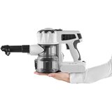 2 v 1 brezžični sesalnik ciklonski filtrirni sistem 0,5 litra kapaciteta posode za prah snemljiva kovinska cev za 2 različni delovni višini (do 105 cm) motorizirana talna krtača z LED lučjo 2 stopnji sesalne moči LED indikator napolnjenosti baterije filter za dovod in odvod zraka (tekstil/HEPA) snemljiva baterija Liion (22,2 V/2200 mAh) čas delovanja od 20 do 40 minut (nastavitev na visok/nizek nivo) čas polnjenja 4,5 ure Dodatki: stenski nosilec, šoba za reže, šoba za nego tekstila, AC/DC adapter za napajanje emisija hrupa