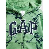 Boys' sweatshirt with gap logo on the front. Green sweatshirt with a print on the surface. Hood, zip fastening and pockets. Long sleeves with knits. Made of cotton, polyester and also 9% recycled polyester.