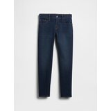 Children's slim jeans made of slightly stretchy denim combine a classic look with comfort. They have a button fastening, in sizes 48 complemented by a hook under a fake press stud for easy dressing, and a zipper fastening. Fivepocket design. The slim cut follows the waist and hip line, with a slight relaxation in the thigh area. This model is part of the Washwell program, which reduces water consumption by at least 20% when washing denim compared to conventional procedures. The material contains 5% recycled cotton, helping to reduce the consumption of raw materials and waste. Made in a RISE Gender Equality Facility.