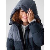 The boys' jacket is an ideal choice for colder days thanks to its warm design and practical details. The outer surface is stitched and waterrepellent, the filling is made of 100% recycled wellon fiber a lightweight synthetic alternative to down that insulates perfectly, is durable and easy to maintain. Both the hood and the body of the jacket have a soft lining for added comfort. The jacket has a hood, zipper fastening and long sleeves finished with elastic cuffs. Practical side pockets. The straight fit reaches hip level, providing freedom of movement and keeping you warm.