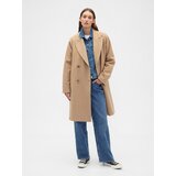 A women's soft knit coat combines an elegant look with a comfortable fit the perfect choice for urban style and more relaxed outfits. A classic lapel collar, long sleeves and button fastening create timeless details that underline the clean silhouette. Slanted pockets on the front add practicality and complete a balanced look that feels sleek yet casual. Made from 49% recycled polyester, the use of which helps to reduce the consumption of natural resources and waste. The product was manufactured in a factory involved in the RISE program, which promotes gender equality and empowers women in the textile industry. Relaxed fit: looser and comfortable fit with a length below the hips.