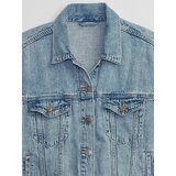 Women's denim jacket crop.With button fastening.Classic fit.Shirt collar.Chest pockets with flap.Front oblique pockets.Waist regulation and hanging loop. Clothing labeled as Gap for Good is made with our planet in mind, so we use natural or recycled materials while trying to reduce the impact of production on water resources. Learn more at Gap for Good.