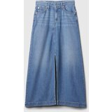 Solid denim with a blend of 5% recycled cotton. Thanks to the exclusive Tencel blend, the skirt is not only soft, but also light and gently flowing.Classic Aline narrow at the waist and loose over the hips, with a slightly flared bottom hem.Button and zip fastening.5 pockets.Slit at the front hem.Perfect for any occasion, from the office to weekend outings stand out for style and sustainability.The models wear a Gap size 27 and are 5'85'11 (172180 cm) tall with a waist of 23.526 (6066 cm) and h