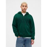 A men's sweatshirt with a warm sherpa lining is the perfect choice for colder days. Made of soft fleece, which is pleasant to the touch and comfortable to wear. Inside, it has an allover sherpa lining for maximum warmth. The hoodie has a drawstring hood, zip fastening, dropped shoulders and long sleeves with ribbed cuffs. Front pockets and the Gap logo on the chest complete the classic look. A straight, looser fit reaches below the hips ideal for layering or wearing alone.