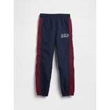 Boys' nylon pants are lightweight, comfortable and ready for every day full of movement. Sewn from smooth 100% recycled nylon, they help reduce the consumption of natural resources and waste. Thanks to the elastic waistband, they are easy to put on and fit comfortably. A loose fit across the hips and thighs guarantees freedom of movement. Side angled pockets are handy for small items, and contrasting stripes on the legs give a sporty look. There is a discreet GAP logo on the side. A great choice for training and everyday adventures.