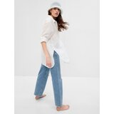 Women's linen shirt.In extended length.Shirt with button fastening.A sewnon pocket on the chest.Long sleeves with cuffs.Longer back with slits.