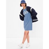 Women's Tshirt dress.Distinctive GAP logo.Short sleeves and round neckline.Pleasant blue color.Shorter length.100% cotton.