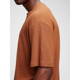 Monochrome men's smooth Tshirt with short sleeves. Pleasant blend of cotton and flax. Round neckline. Men's shirt.Brown color.Short sleeves.Cotton and linen. Material: cotton, spandex