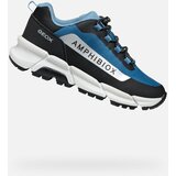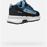 Stylish boys' sneakers Geox Flexyper Plus in blueblack design with white details will impress with their sporty design. Distinctive stitching and dynamic lines give the shoes a modern look, while a practical heel loop makes it easy to put on.The sneakers are equipped with the following technologies:Respira technology ensures optimal breathability thanks to a special membrane in the sole that wicks away moisture and prevents water from penetrating insideAmphibiox technology provides additional water resistance and protection from inclement weatherThe robust sole with a distinctive pattern ensures stability and good grip on various surfaces. The combination of light and dark blue shades with black and white accents creates a timeless look suitable for everyday wear.Thanks to their thoughtful design and reliable technology, these sneakers will be a great companion for active boys throughout the day. Get your child comfortable and stylish shoes that will provide him with the necessary comfort during all activities.
