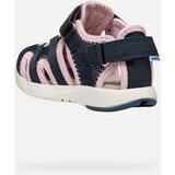 Girls' Geox sandals in dark blue with pink details impress with their attractive design. On the side there is a cute narwhal with a pink horn that will delight any little girl. The sandals have a practical open design with several straps and perforated details in the blue part.The sandals are equipped with the following technology:Respira technology ensures optimal breathability thanks to a special membrane in the sole that wicks away moisture and prevents water from penetrating insidePractical fastening and several adjustable straps allow for easy putting on and a perfect fit to the foot. Perforated details on the dark blue part provide additional ventilation on warm days.These stylish sandals are the perfect choice for active girls who want to be fashionable in summer while enjoying comfort with every step.