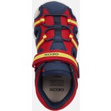 Children's sandals Geox Iupidoo in dark blue with red and yellow details are a practical choice for active children. A distinctive striped design on the strap and mesh material on the upper give the shoe a sporty look.The shoes are equipped with the following technology:Respira technology ensures optimal breathability thanks to a special membrane in the sole that wicks away moisture and prevents water from penetrating insideWaterresistant material allows carefree wearing even in wet environmentsPractical hookandloop fastener with blueredyellow striped design makes it easy to put onThe sandals are ideal for your boy's first steps. The patterned sole in a combination of dark blue and white provides stability while walking.The combination of comfort and practical design makes these sandals a great choice for everyday wear and your child's summer adventures.