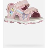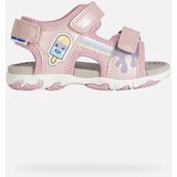 The pink Geox Flaffee children's sandals impress with their cheerful design with a smiling ice cream motif in pastel colours. The top is decorated with a colorful stripe and a practical fastening with two Velcro fasteners for easy slipping.The shoes are equipped with the following technology:Respira technology ensures optimal breathability thanks to a special membrane in the sole that wicks away moisture and prevents water from penetrating insideThe white sole with a pink wavy pattern on the sides provides stable support while walking. Sandals are ideal for warm summer days, when they will protect your children's feet and at the same time provide the necessary ventilation.Give your kids comfort and style all in one. These sandals are the perfect choice for everyday wear as well as summer adventures.
