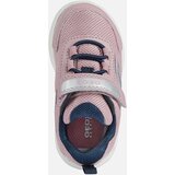 The Geox Sprintye girls' sneakers in pink impress with their modern design with distinctive silver details and dark blue accents. The practical Velcro makes it easy to put on and ensures a secure fit on the foot.The shoes are equipped with the following technology:Respira technology ensures optimal breathability thanks to a special membrane in the sole that wicks away moisture and prevents water from penetrating insideThe combination of breathable mesh and synthetic material ensures comfort for everyday wear. The white outsole with a textured pattern provides the necessary grip when moving.These stylish sneakers are the perfect choice for active little girls who appreciate the combination of comfort and fashionable looks.