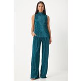 100% Polyester; Pleated suit consisting of elasticated waist, side pocket trousers and a sleeveless, highneck blouse.; Product Length: 65 cm Trouser Length: 115 cm;Colors May Vary Due to Light Differences in Studio Shoots.; Height: 1.74 cm, Chest: 81 cm Waist: 60 cm Hip: 87 cm