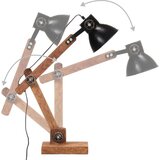 Namizna svetilka je sestavljena iz ročice iz trdnega mangovega lesa in železnega senčnika, zato je trpežna in vzdržljiva. Nastavljiva in fleksibilna ročica omogoča nastavitev na želeno višino. Lesen okvir s podeželsko rjavim premazom in senčnik s črnim finišem svetilki dodajata industrijski stil. Svetilka ima navojno grlo E27 za žarnico z največ 25 W. Izbirate in namestite lahko žarnice E27 v različnih barvah ter tako ustvarite sproščeno in spokojno vzdušje. Ta namizna svetilka ima nizko napetost ter je lahko energijsko varčna.
