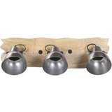 Železna senčila z brušenim srebrnim zaključkom in trden mangov les z živim robom in naravnim zaključkom se odlično podajo v podeželske ali industrijske notranje prostore. Stropna svetilka s 3 senčniki ima navojno grlo E27 za žarnice z močjo največ 25 vatov. Izberete in namestite lahko žarnice E27 v različnih barvah ter tako ustvarite sproščeno in spokojno vzdušje.