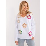 The model is wearing one size. Model's measurements: height 175 cm, bust 90 cm, waist 66 cm, hips 94 cm. Measurements of the blouse in one size measured flat: armpit width 64 cm, sleeve length 57 cm, total length 65 cm.