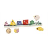https://www.youtube.com/watch?vT6YbVi5AB0 Pomlad je tu. Na drevesih sedijo ptičke različnih oblik, barv in velikosti. Ali jim lahko pomagate, da najdejo svoje mesto na veji? To igro razvrščanja sestavlja 72 lesenih ptic: kvadratne, okrogle, velike, majhne, zelene, modre itd... Vse so pomešane med seboj. Pomagajmo jim najti njihovo družino. Otroci bodo metali kocko, da bi našli želeno barvo, obliko in velikost. Med igro morajo primerjati vse te podatke in ptice postaviti na pravo mesto na veji. Izobraževalna igra za otroke od 2 let starosti dalje. Otroci se naučijo razvrščati elemente po barvi, obliki in velikosti. Igra ima več možnosti za igro. Namenjena je 1 ali 2 igralcema. Otrok igra sam, v sodelovanju s starši ali pa igrata dva otroka hkrati. Igrača je izdelana iz lesa s certifikatom FSC®. Dimenzije paketa so 32 x 14 x 5 cm.