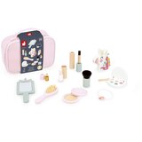 Pripravite se na čarobno preobrazbo! Ta čudovit kozmetični kovček z motivom samoroga je idealen za male lepotičnice, ki se rade igrajo odrasle in odkrivajo svet lepote. Otroci lahko posnemajo odrasle in se razvajajo s svojimi nepogrešljivimi pripomočki že od 3. leta dalje. Kovček vsebuje 10 lesenih dodatkov, ki spodbujajo ustvarjalnost in razvoj fine motorike. Lesena figurica samoroga pokaže jezik, ko mu pritisnete na grivo. Vsebina seta: paleta senčil za oči s čopičem, maskara, šminka, lak za nohte, krtača za lase, elastika za lase, čopič za rdečilo, rdečilo, ogledalce, parfum. Leseni dodatki za ličenje so le igrače, ne prava kozmetika. Vsi dodatki so izdelani iz lesa iz trajnostno upravljanih gozdov s certifikatom FSC. Kovček se zapira z zadrgo, kar omogoča enostavno prenašanje in shranjevanje vseh kozmetičnih zakladov. Dimenzije kovčka: 20,4 × 9 × 15,4 cm. Ta set ni le odlično darilo za male gospodične, temveč spodbuja tudi razvoj domišljije in estetskega čuta. Naj se vaša mala princeska potopi v svet domišljije in lepote s tem čarobnim kozmetičnim kovčkom!