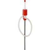 Ročna sifonska črpalka za ročke/sode, za rahlo agresivne snovi, 18,5 l/min. Dobava predhodno nameščeno, končna montaža na mestu namestitve. Izvedba črpalke ročna črpalka s potopno cevjo. Snovi voda, lahke kemikalije, šibke kisline, baze, čistila. Material črpalke PE, PVC. Premer potopne cevi 25 mm. Črpalna količina 18,5 l/min. Dolžina potopne cevi 850 mm. Navoj G 2 col. Teža 0.41 kg. Tip izdelka ročne črpalke. Za vodo in rahlo agresivne, razredčene kisline in baze. Enostavno in varno doziranje. Za ročke in 200l sode. Ne potrebuje električnega ali pnevmatskega priključka. Ročna sifonska črpalka za vodo in rahlo agresivne, razredčene kisline in blage baze. Ni primerna za gorljive snovi. Za ročke in 200l sode. Material črpalke PE in PVC. Zmogljivost 0,08 l/črpanje ali 18,5 l/min pri črpanju kot sifonska črpalka. Potopna cev dolžine 850 mm, premera 25 mm. Navojni priključek G 2''. Ročna črpalka je zasnovana kot sifonska črpalka in ima priloženo 1300 mm dolgo odtočno cev. Ko ročno napolnite sesalno in odtočno cev, črpalka samodejno črpa dalje . Upoštevajte: če ne veste, ali je črpalka primerna za določeno snov, se pozanimajte pri nas.