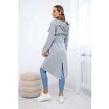 We present to you a long cape with a hood. The cape has a longer back and ties at the waist. A decorative tape is also sewn on the back. Sweater with pockets. The sweater is made of highquality material. The size is universal and will be suitable for ladies in sizes S, M and LComposition:90% cotton,10% elastaneDimensions:Underarm width: 53 cmSleeve length from armpit: 40 cmTotal length front: 91 cm / back: 110 cmHip width: 60 cm